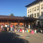 Am Montag, 26, August fand im Schulhaus Brunnmatt der alljährliche Startanlass statt. Bei sonnigem Wetter wurden alle neuen Schülerinnen und Schüler begrüsst und mit einem Glückskäfer, den die 5. Klässler gefaltet haben, beschenkt. Die 2., 4. und 6. Klässler haben für die anderen Klassen kurze Theater zu unseren Begriffen ,,Respekt, Sorgsamkeit, Hilfsbereitschaft und Akzeptanz'' einstudiert un diese an diesem Morgen vorgespielt.